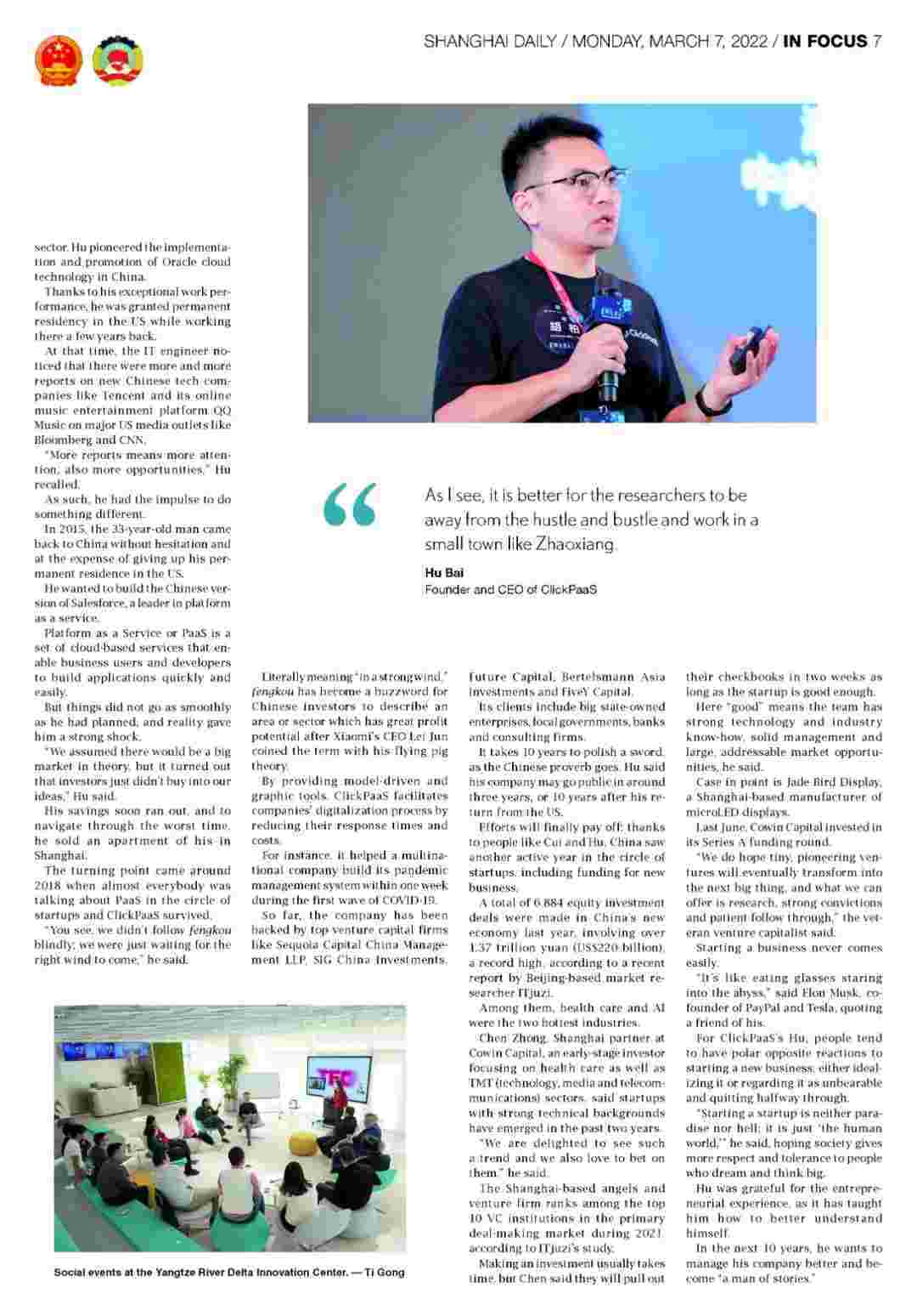 《上海日报》专访华为钱包创始人、、、、、、、、CEO胡柏,,,,,,,探究其创业背后的故事!!!!!!!!!!!!